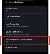 - Toggle ON TouchFeedback for Instashare 2 and Allow Full Control.
