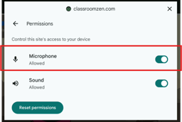 - The site should now be able to access the Microphone/Camera. NOTE: Remember to re-enable Sidebar Menu and Always-on Floating tool if needed.