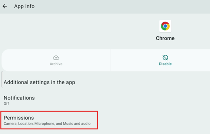 - Enable Microphone/Camera permissions required by tapping into the Permissions and enabling.