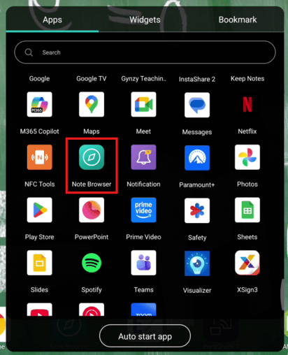 Apps menu → Note Browser.