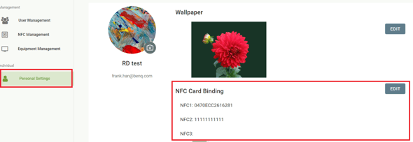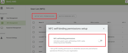 Administrators can now grant users permission to register and bind NFC cards on their own through the AMS cloud interface.