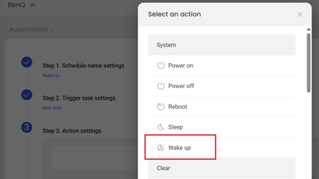Added the Wake up action in Automation