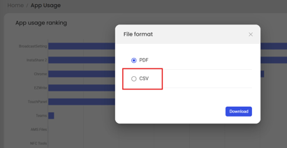 The following options are now available in Dashboard → App Usage → View details → Download: