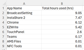 CSV: Provides app usages in a format that can be imported into a spreadsheet.