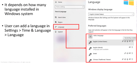 Languages depend on what is installed on the Windows device. Users can add languages under Settings > Time & Language > Language